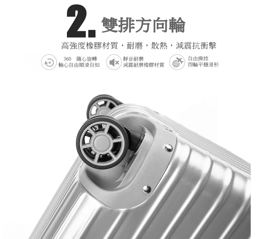 6. 因生產批次不同,箱體之外零配件會有所差異(輪子、鎖扣、拉桿),並不影響整體外觀及使用。